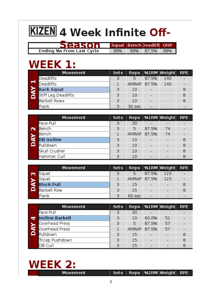 Kizen 16 Week Powerbuilding Program 4 Week Preview Pdf Lift Vault